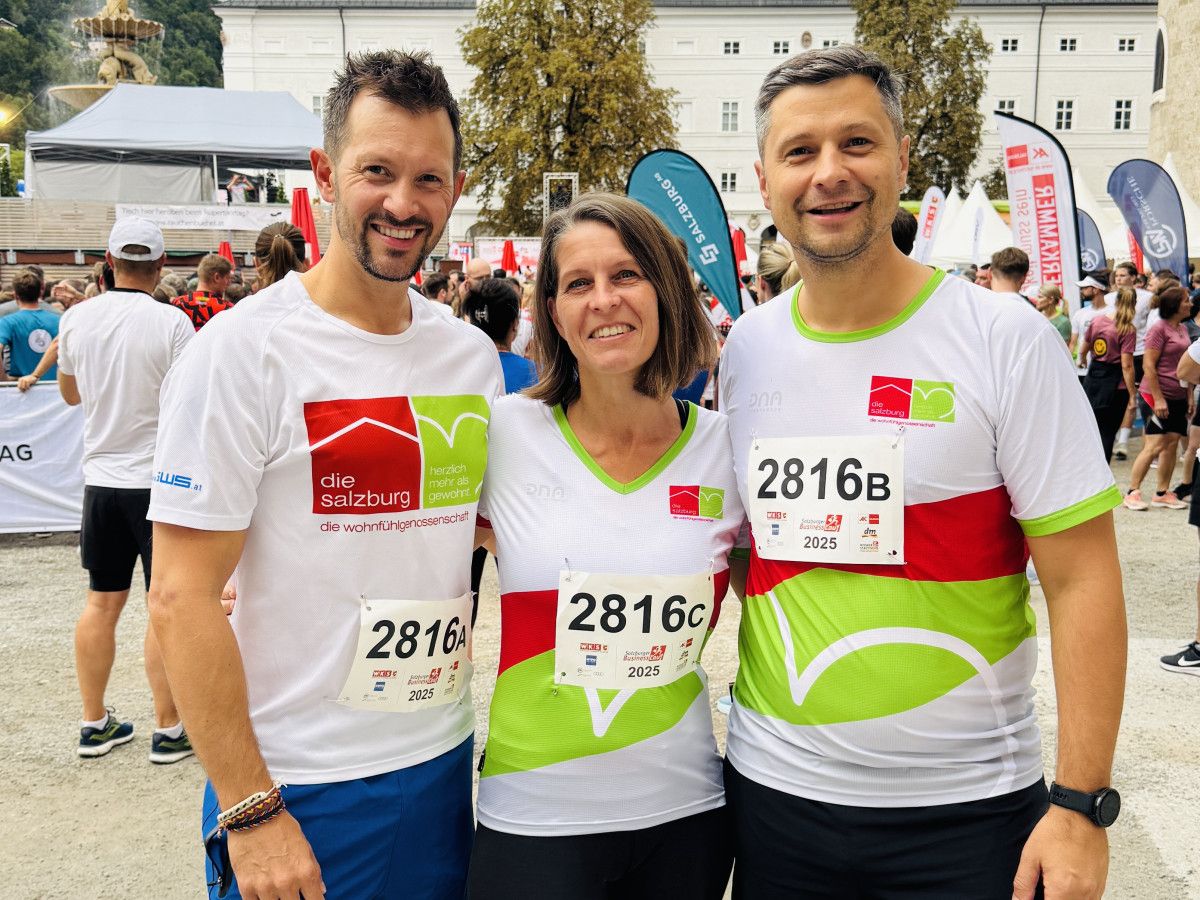Mit am Start: unser starkes Wohnfühlteam mit Dominik Strasser, Ingrid Gummerer und Peter Alexander Krenn. Die drei haben sich tapfer geschlagen und wurden vom „die salzburg“-Fanclub kräftig angefeuert – danke an dieser Stelle für den Support am Streckenrand!