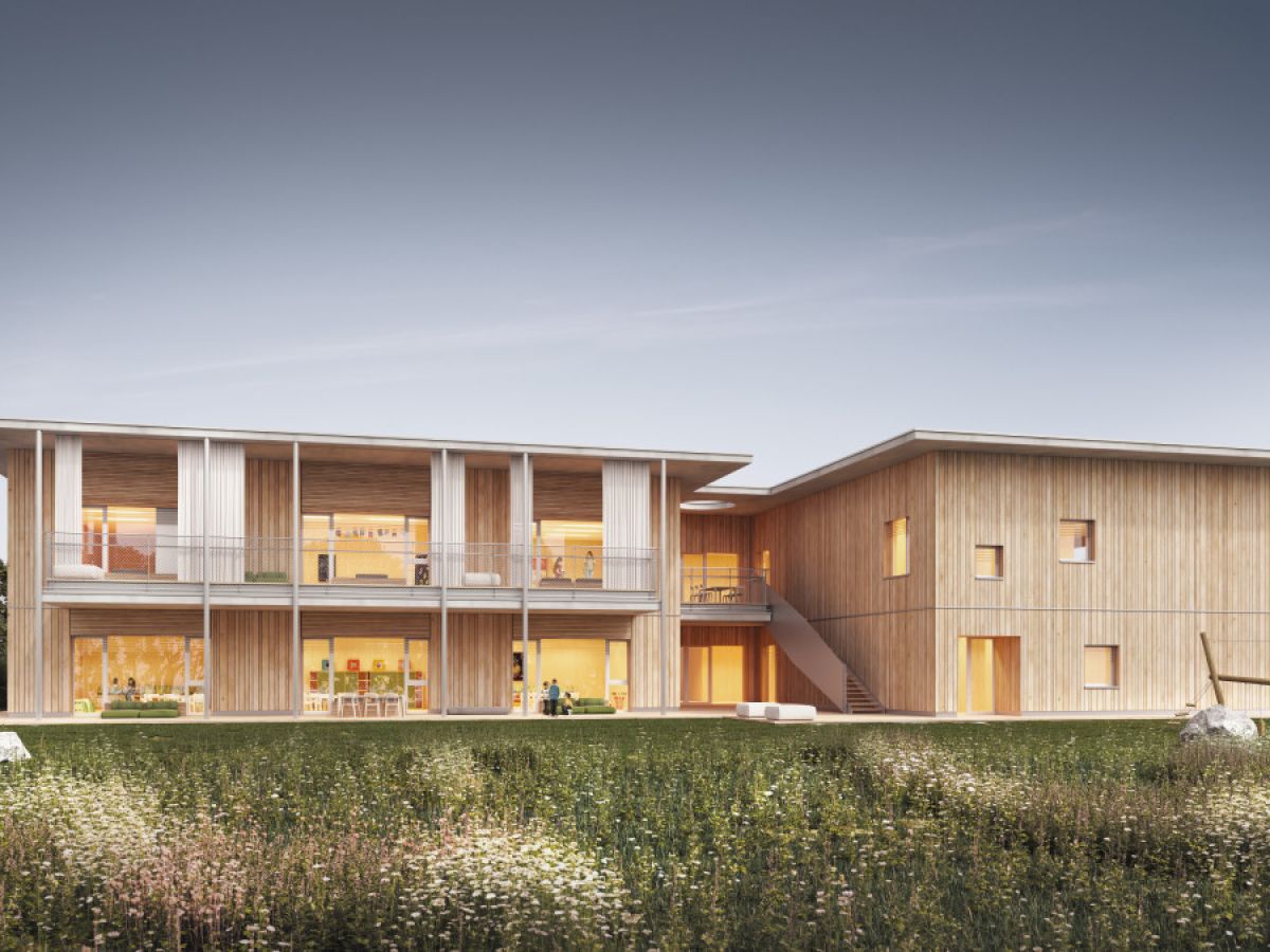 Hier entsteht eine Einrichtung für insgesamt 6 Krabbelgruppen und 2 alterserweiterte Gruppen im Ortsteil Reitberg